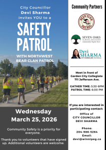 Safety remains a top priority, and I am proud to support the incredible work of the Northwest Bear Clan and community volunteers with their ongoing commitment to making our neighbourhoods safer, stronger, and more connected. Community Safety walks are a great way to promote safety and wellbeing.